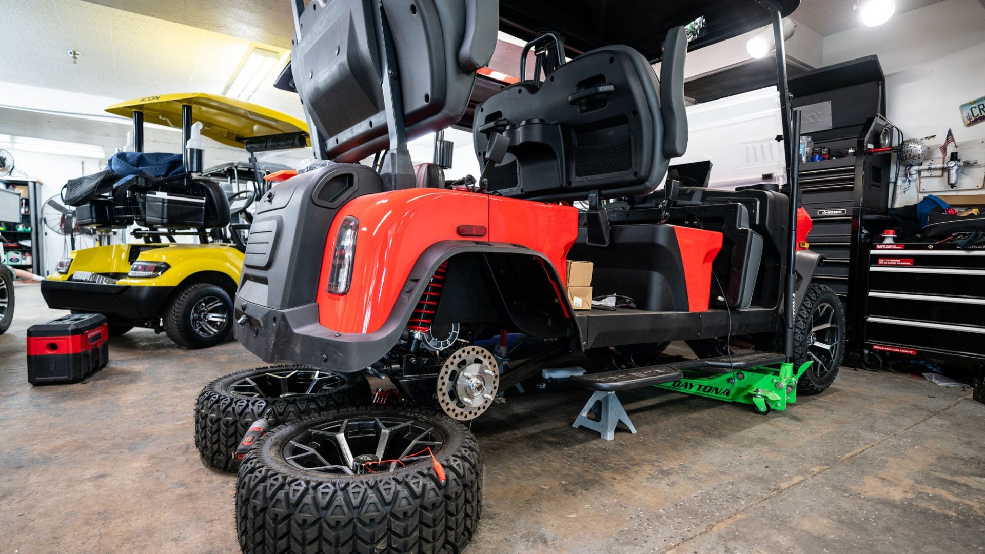 We cover tire care, battery checks, motor service, brake inspection, electrical checks, and steering alignment to keep your golf cart in top condition.